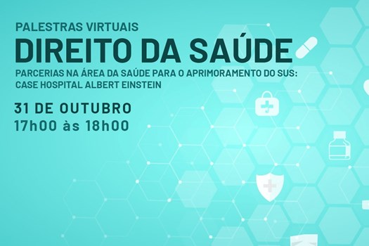 A 3ª edição do evento Palestras Virtuais - Direito da Saúde, promovido pela Comissão Especial de Direito da Saúde do CFOAB, será realizada em 31 de outubro. Nesta etapa, os participantes discutirão as "Parcerias na área da Saúde para o aprimoramento do SUS: case Hospital Albert Einstein", tendo como palestrante a diretora jurídica do hospital, Rogeria Leoni Cruz.