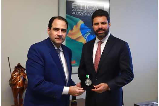 Em reconhecimento ao espírito de presteza e agilidade demonstrado pelo Ministério da Justiça e Segurança Pública no enfrentamento do incêndio do edifício-sede do Conselho Federal, ocorrido em 27 de julho deste ano, o presidente nacional da OAB, Beto Simonetti, entregou uma medalha ao secretário-executivo da pasta, Manoel Carlos de Almeida Neto. A homenagem aconteceu nesta segunda-feira (25/11), em reunião no prédio histórico da Ordem.