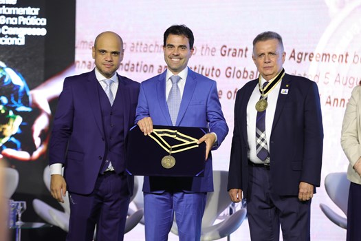 A solenidade marcou os 20 anos do Instituto Global ESG e o lançamento da Frente Parlamentar ESG na Prática (FPESG) no Congresso Nacional. O objetivo foi apresentar os 20 Princípios Norteadores para o Desenvolvimento Sustentável, uma estrutura que orientará o Marco Regulatório ESG (MRESG) no Brasil, conhecido como ESG20+.