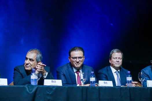 Em seu discurso, Simonetti elencou as expressivas vitórias já nas primeiras semanas do segundo mandato. “A força da nossa união, que me reconduziu à presidência da OAB, já tem surtido efeito positivo. No STF [Supremo Tribunal Federal], conseguimos a garantia de que os honorários em causas privadas serão fixados em respeito ao Código de Processo Civil. No STJ [Superior Tribunal de Justiça], obtivemos a definição de que os litígios serão equilibrados, assegurando a proteção ao consumidor. No CNJ [Conselho Nacional de Justiça], reforçamos a importância da sustentação oral e a prevalência da contagem dos prazos processuais”, disse, complementando que, na última quinta-feira, graças à sensibilidade do Congresso Nacional e da Presidência da República, foi sancionada a lei que isenta advogados de antecipar as custas processuais na execução de honorários.